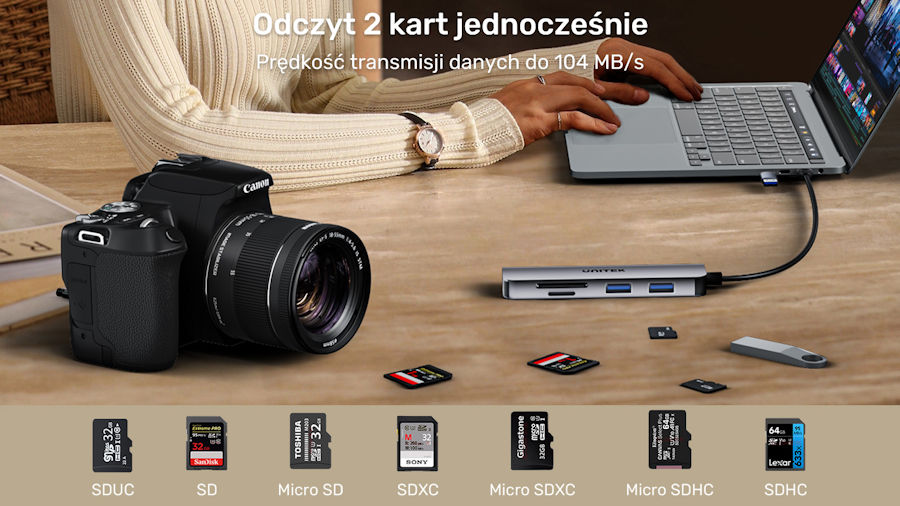 To doskonałe rozwiązanie, które rozszerzy możliwości twojego komputera dzięki trzem portom USB-A, a także czytnikowi kart SD i Micro SD. To kompaktowe urządzenie zapewnia szybką łączność i przesył danych, co czyni go idealnym wyborem zarówno do pracy stacjonarnej, jak i podróży.