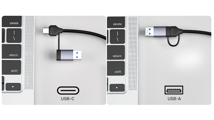 Zapewnia elastyczność dzięki dwóm opcjom interfejsu – USB-C i USB-A. Możesz podłączyć koncentrator do różnych urządzeń, niezależnie od posiadanego portu, co jest szczególnie wygodne, gdy pracujesz z różnorodnymi komputerami i laptopami. Umożliwia to szybkie i bezproblemowe podłączenie do każdego urządzenia hosta.