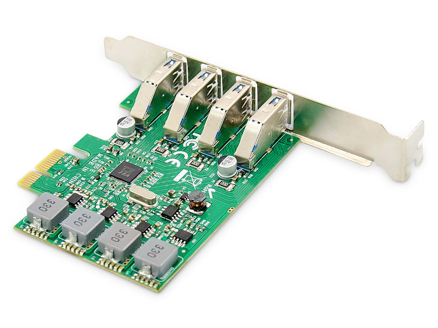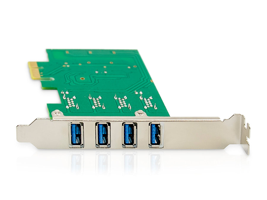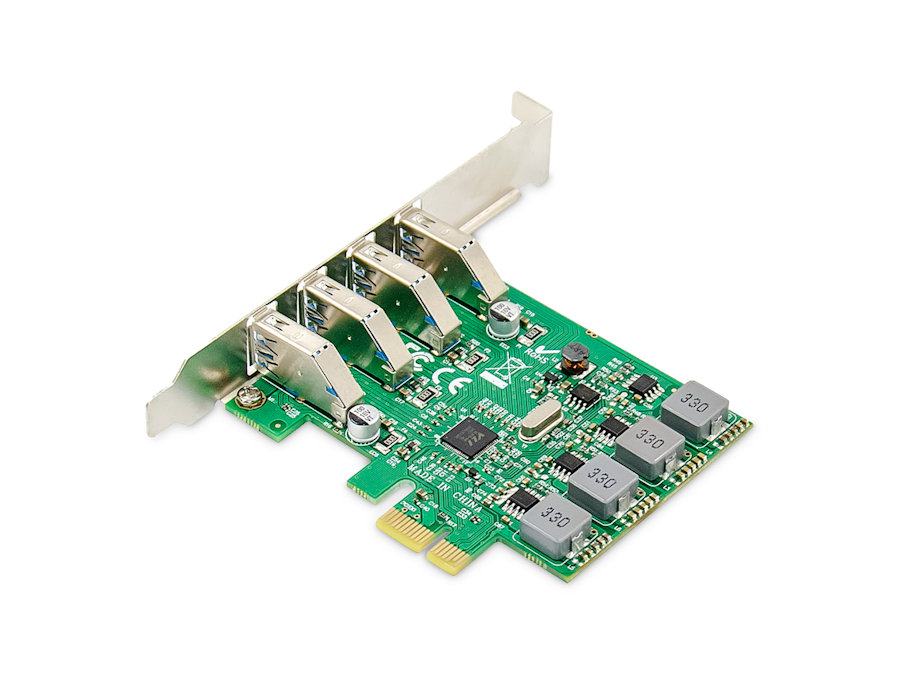 Ten w funkcjonalny kontroler hosta USB 3.0 dodaje cztery porty USB 3.0 do komputera z wolnym gniazdem PCIe. Zasilanie jest dostarczane przez gniazdo PCI Express i zapewnia maksymalny prąd 3000 mA na każdy port USB. Podłączaj urządzenia USB, takie jak drukarka, skaner, aparat fotograficzny lub zewnętrzny dysk twardy.