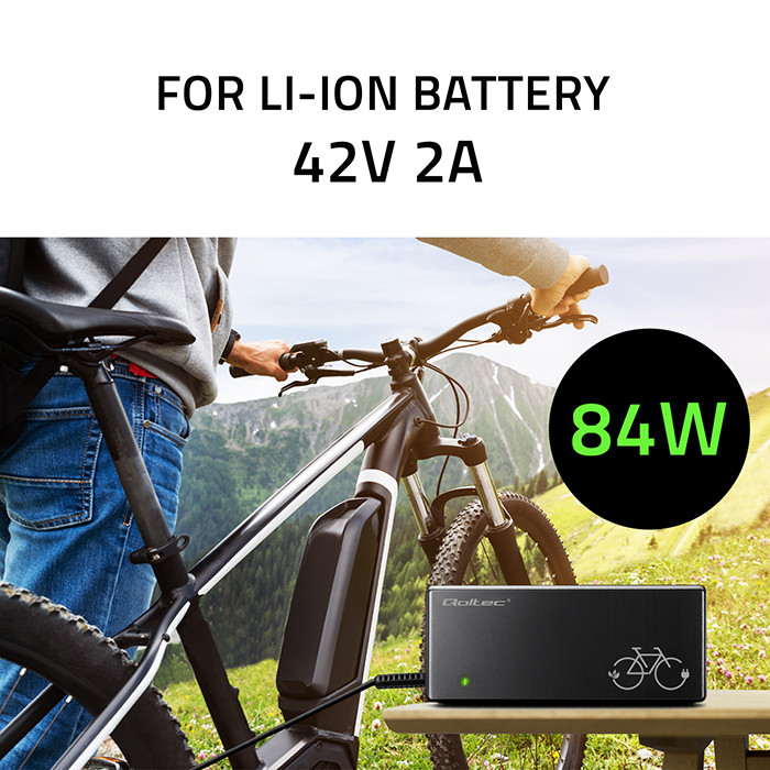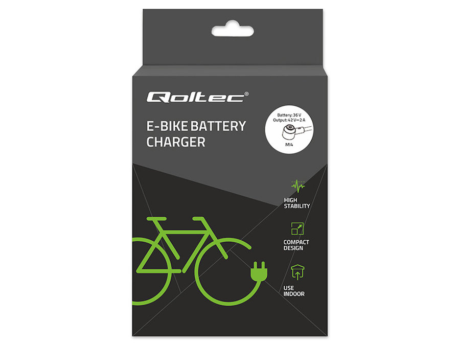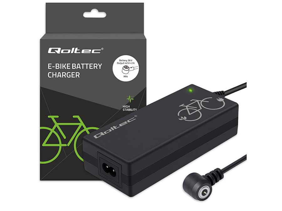 Ładowarka mobilna marki Qoltec o napięciu 42V i natężeniu ładowania 2A z wtykiem Mi4 oraz ogólnej mocy ładowania 84W dedykowana do akumulatorów litowo-jonowych 36V, pozwala na naładowanie baterii z dowolnego gniazdka elektrycznego 230V. To wygodne i funkcjonalne rozwiązanie z zaawansowaną elektroniką, chroni twoją baterię podczas procesu ładowania. Wyposażona w diodę LED, która w momencie naładowania baterii zmienia kolor na zielony.