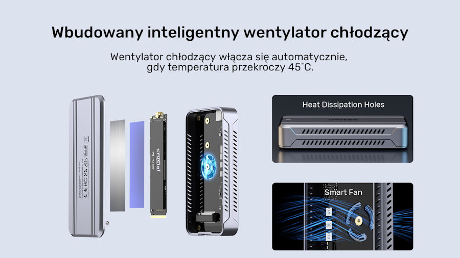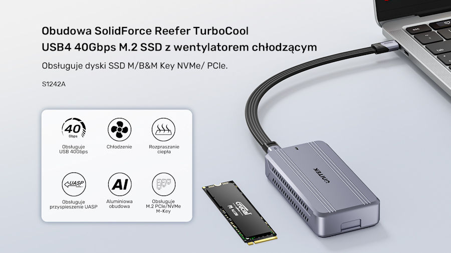 Aktywnie chłodzona obudowa M2 NvMe SSD USB4 40Gbps Unitek model S1242AGY01-EU