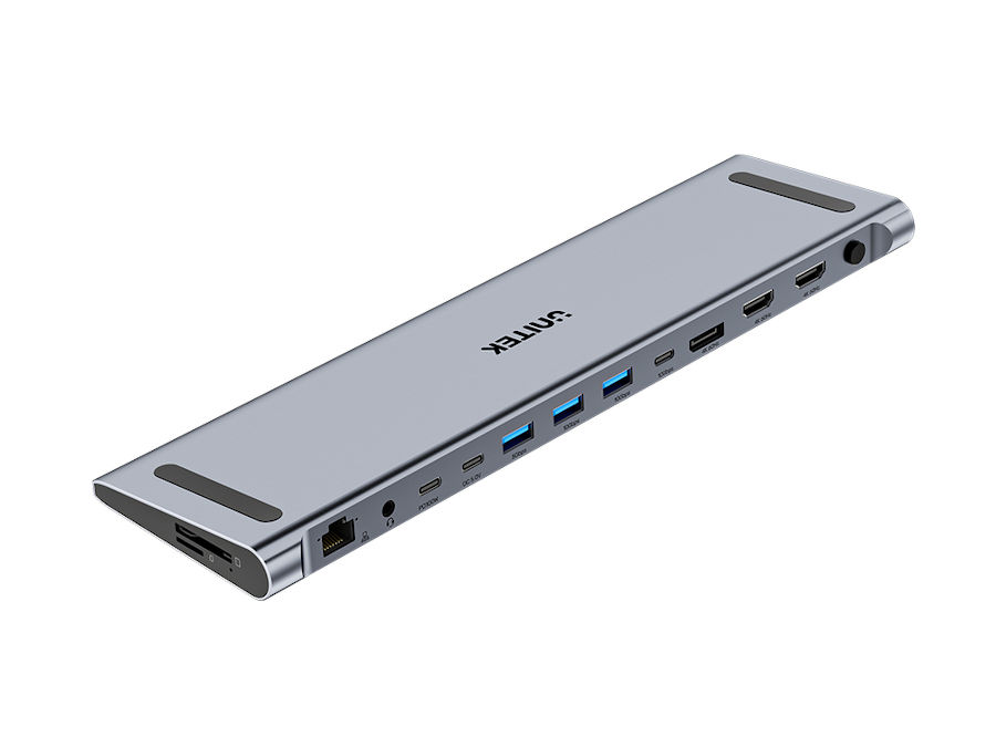 to idealne rozwiązanie dla specjalistów IT, twórców multimedialnych i każdego, kto potrzebuje płynnej pracy na wielu ekranach oraz przełączania między dwoma komputerami przy użyciu jednej klawiatury i myszy. Wbudowany czytnik kart SD i microSD pozwala na błyskawiczne kopiowanie zdjęć i wideo bez potrzeby używania adapterów. Dodatkowe gniazdo jack 3,5 mm umożliwia podłączenie słuchawek lub mikrofonu - przydatne zarówno w pracy biurowej, jak i przy wideokonferencjach. Zintegrowany port RJ45 zapewnia stabilne połączenie z prędkością do 1000 Mbps - idealne do pracy w środowiskach korporacyjnych, podczas transferu dużych plików czy w przypadku konieczności korzystania z VPN.