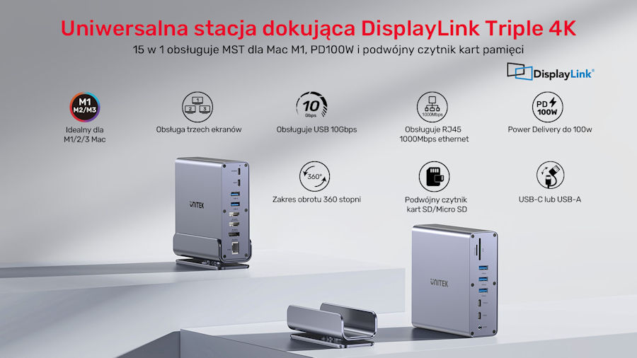 Uniwersalna stacja dokująca DisplayLink 4K x3 Unitek model D1135AGY01