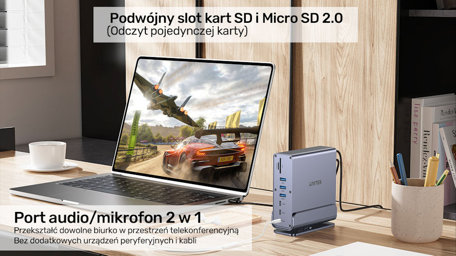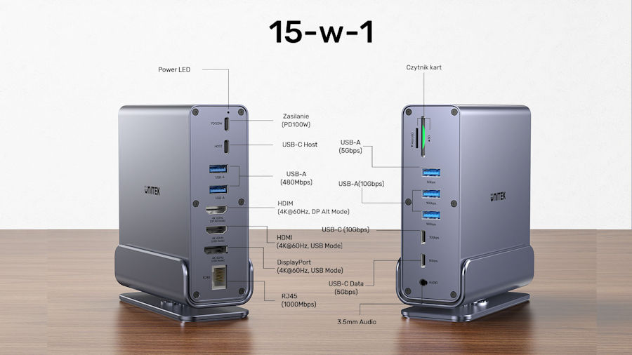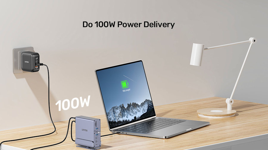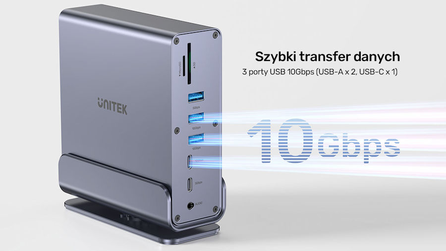 to urządzenie stworzone po to, byś mógł podłączyć więcej, pracować szybciej i mieć większą kontrolę nad przestrzenią roboczą. Dzięki obsłudze nawet trzech monitorów 4K zyskujesz panoramiczny obraz, większy komfort i efektywność w każdej dziedzinie - od biura po pracę zdalną. Wszystko działa płynnie, także na urządzeniach z ograniczoną obsługą wyświetlaczy, takich jak MacBooki z układem M1. Nowa wersja stacji posiada pot PD o mocy 100W, co pozwala nie tylko ładować laptopa z pełną mocą, ale też zasilać dodatkowe urządzenia jednocześnie. Dzięki temu nie musisz wybierać, czy szybciej naładujesz telefon, czy utrzymasz laptopa pod napięciem. Korzystając z jednej stacji, redukujesz liczbę kabli i przejściówek na biurku do minimum. Wystarczy jeden kabel USB-C, by przesłać obraz, dane i zasilanie.