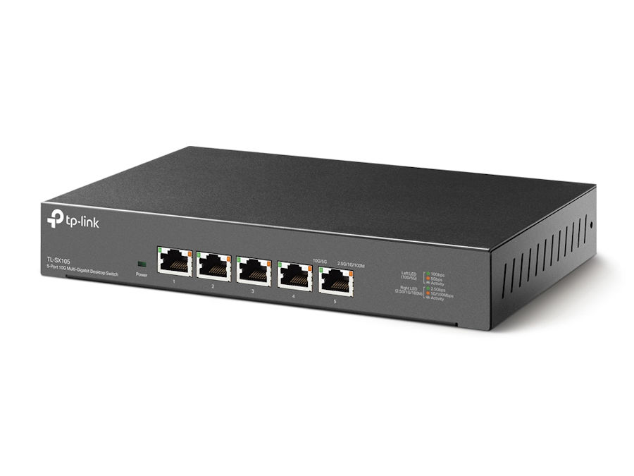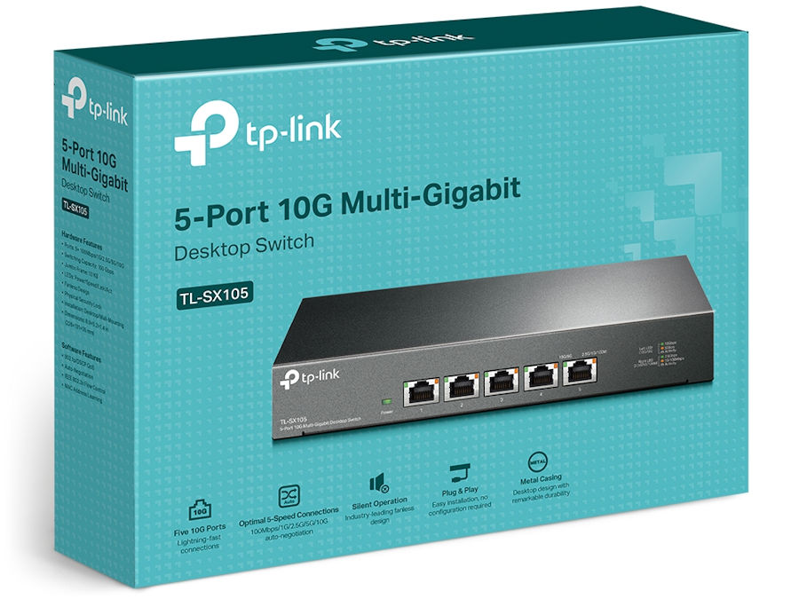 jest 5-portowym przełącznikiem 10G typu desktop, zapewniającym przepustowość przełączania do 100 Gb/s. Autonegocjacja w 5 prędkościach (100Mb/s / 1G / 2,5G / 5G / 10G) inteligentnie dostosowuje porty pod względem zgodności i optymalnej wydajności dla wszystkich urządzeń, w tym NAS 10G, serwerów 10G, stacji roboczych, komputerów do gier, punktów dostępowych 2,5G / 5G / 10G, wideo 8K, komputerów stacjonarnych i wielu innych. Niezależnie czy pracujesz w biurze czy w domu, błyskawiczne połączenia będą dostępne dla stacji roboczych, komputerów i punktów dostępowych WiFi 6. Urządzenie nie posiada wentylatorów, dlatego pracuje bardzo cicho i tym samym jest świetnym uzupełnieniem domowego lub biurowego sprzętu sieciowego. Wytrzymała obudowa z metalu, możliwość montażu na blacie lub ścianie oraz bardzo skuteczny rozpraszacz ciepła to cechy, które czynią przełącznik TL-SX105 urządzeniem uniwersalnym.