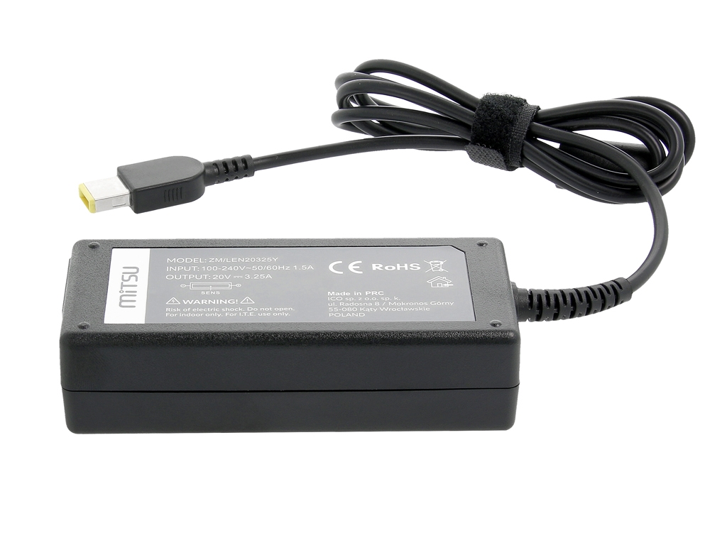 Zasilacz Mitsu 20v 3.25a (prostokątny 11.0x4.5 pin - Yoga) 65W do Lenovo