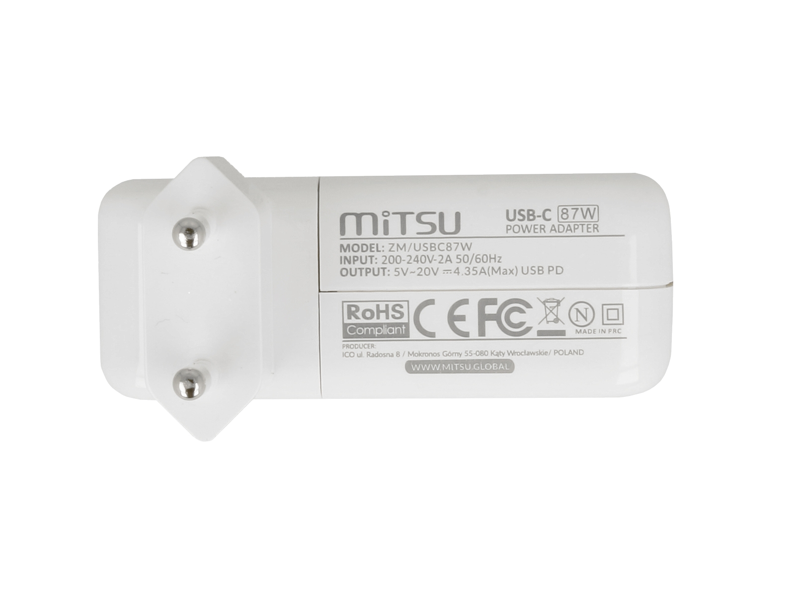 Zasilacz Mitsu 87W USB type C USB-C (white)