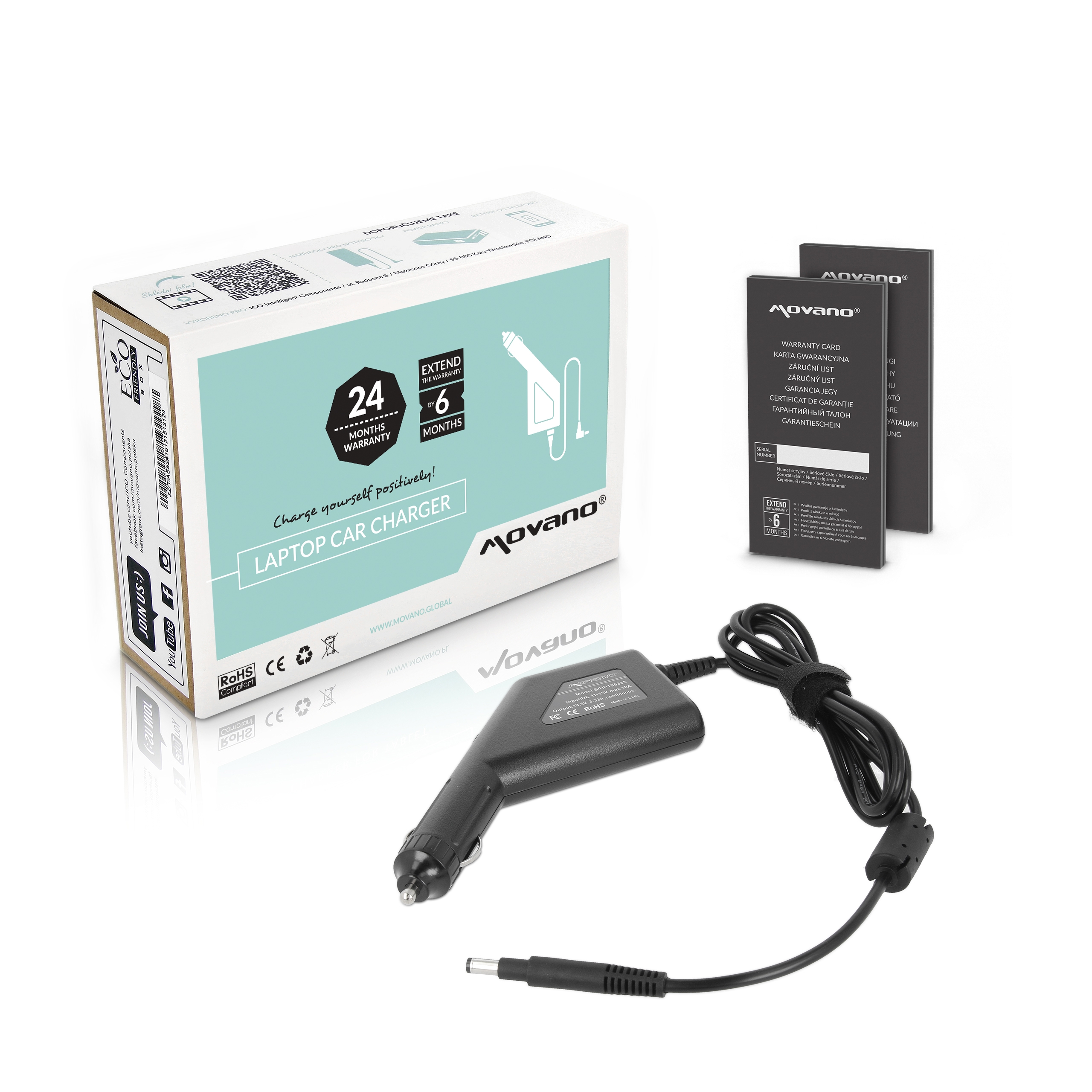 Zasilacz samochodowy Movano 19.5v 3.33a (4.8x1.7) 65W do HP